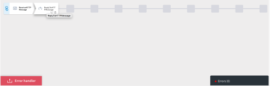 The red Error Handler button that you see to the bottom left is for error correction. Think of these as catch blocks. If there is an error in the main flow, this error handler will be trigger. The black Errors(0) button is a validation provider which will show any validation errors in our flow.